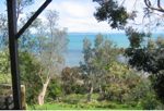 View through large treed garden across Westernport Bay to Phillip Island and Flinders.